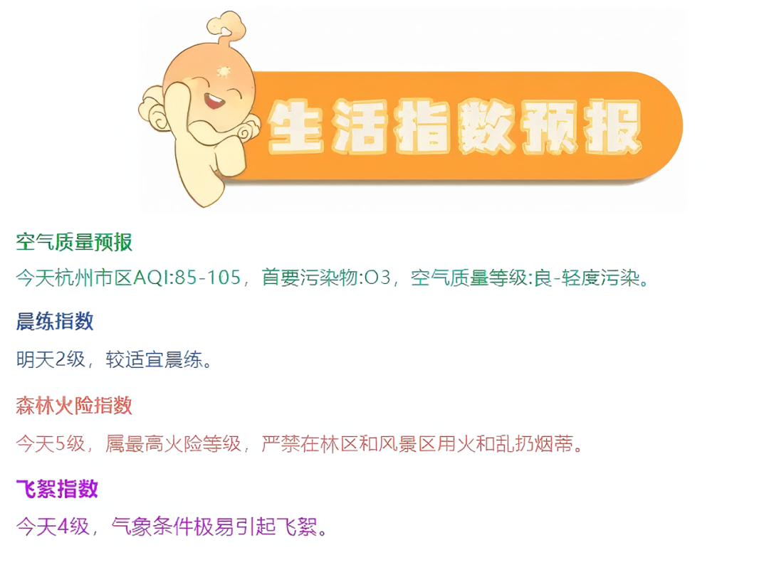4月7日以来,杭州气象每日发布飞絮指数预报(由低到高分为四级)。当飞絮指数达到三级或四级时,过敏体质人群需强化防护。